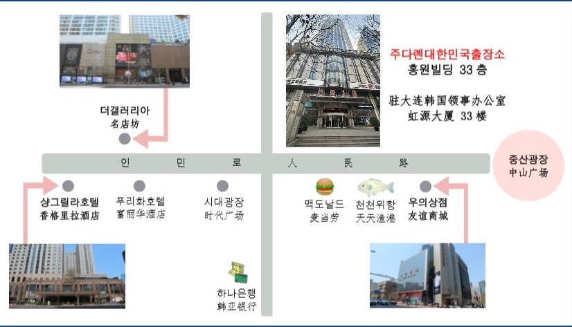 ●영문 : 33FL Hongyuan Building, 23Renmin Road, Zhongshan District, Dalian, 116001, China