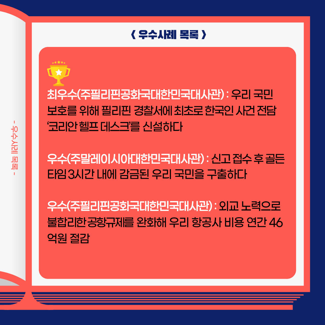 2025년 제2차 외교부 적극행정 우수사례 공모전을 통해 선발된 우수사례 7건을 소개합니다.