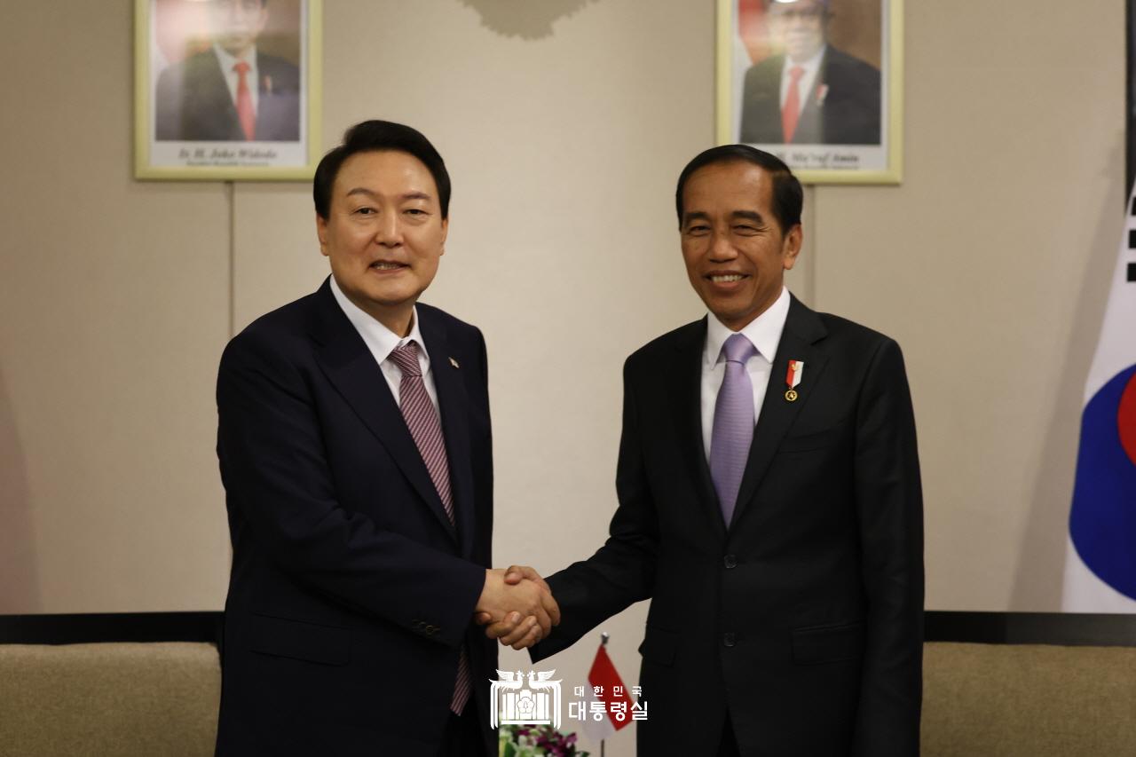 양 정상은 행사 전 별도 사전환담을 가졌습니다. 양 정상은 지난 7월 말 한-인도네시아 정상회담 이후 양국간 전기차·배터리와 같은 첨단 산업, 인프라, 국방·방산 등 다방면에서 후속 협력이 활발히 이루어지고 있는 것을 평가하였습니다.