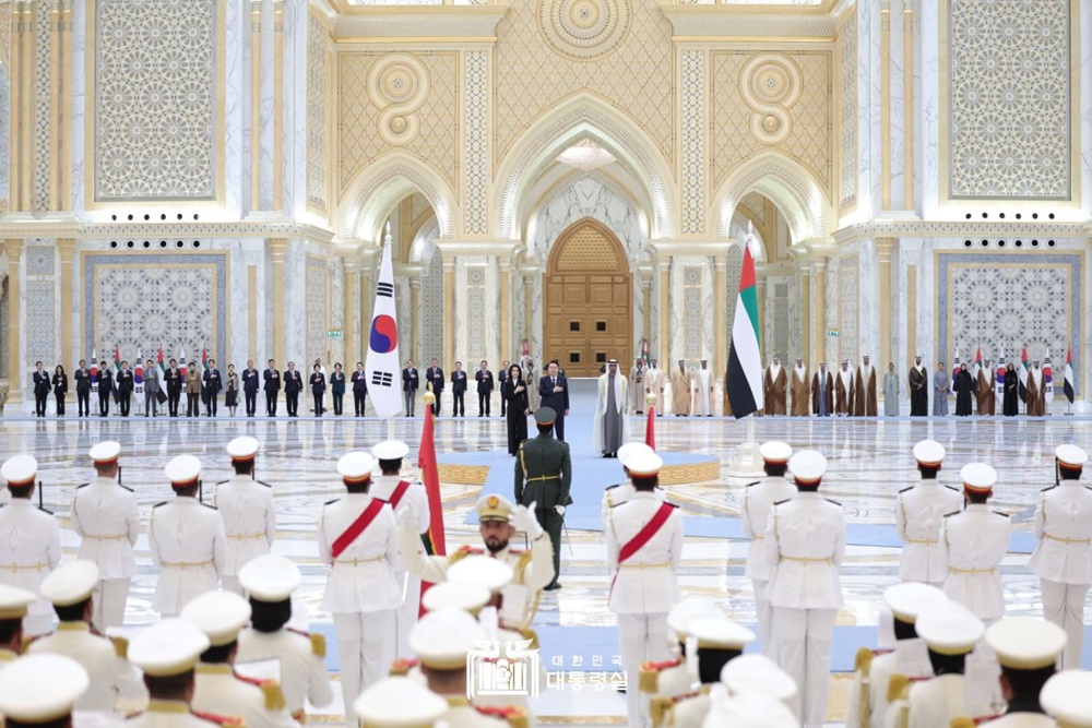 1월 15일 윤석열 대통령 부부는 공식환영식 참석 및 방명록에 서명했습니다.