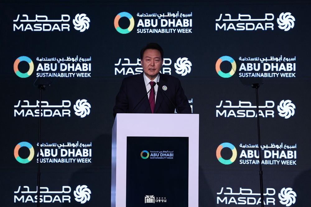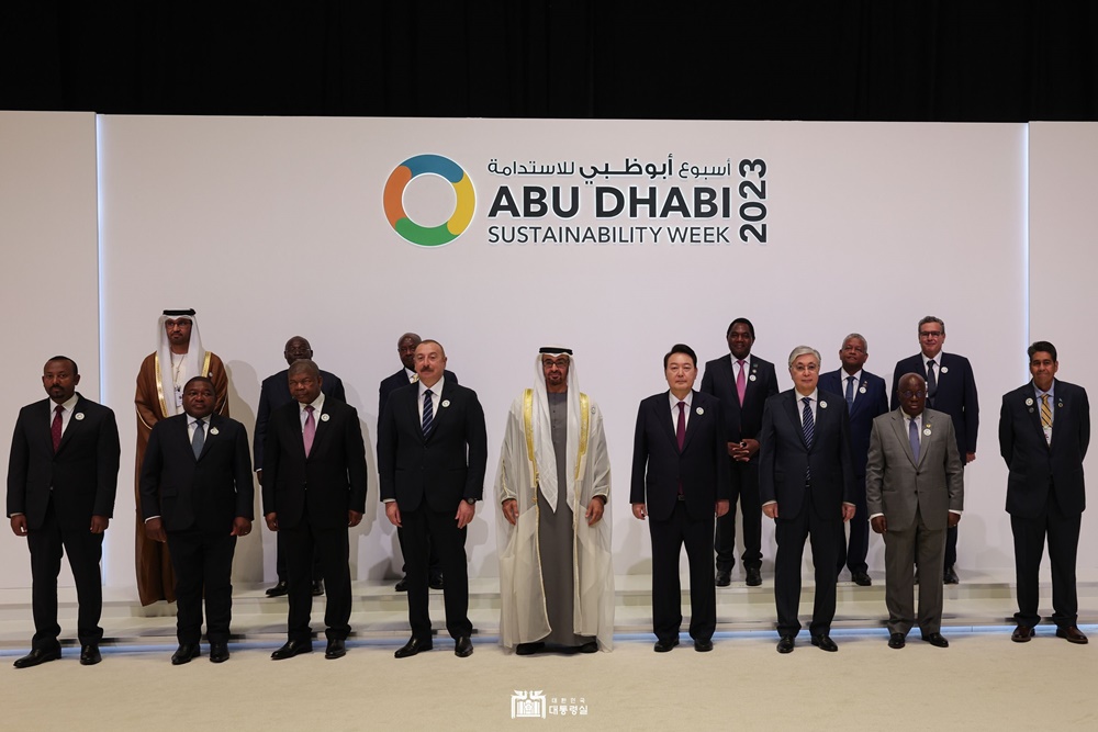 아랍에미리트(UAE)를 국빈방문 중인 윤석열 대통령은 1.16.(월) 오전 아부다비 국립전시장(ADNEC)에서 개최된 ‘아부다비 지속가능성 주간(Abu Dhabi Sustainability Week)’ 개막식에 모하메드 대통령과 함께 참석하여 기조연설을 했습니다.